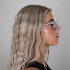 Ook is het voorzien van zilverkleurige hardwareklinknagels en puntige uiteinden van de pootjes. De diepe schuine insnijdingen langs de CR39-lenzen bieden niet alleen een unieke afwerking, maar ook bescherming tegen schadelijke UV-stralen.