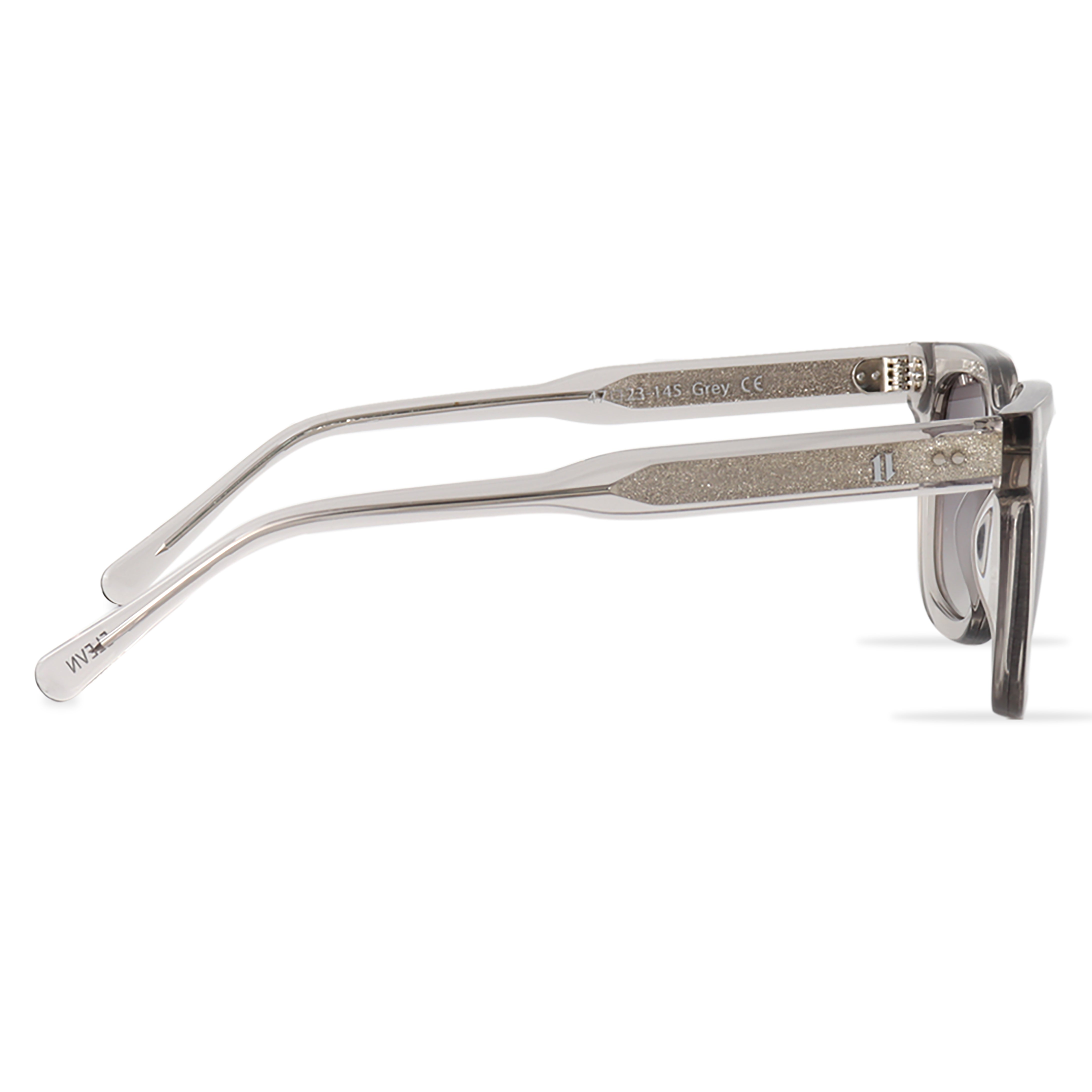 11 Create Your World - Zonnebril Grijs is een stijlvolle bril die een dynamisch contrast creëert met zijn robuuste rechthoekige montuur en slanke zijkanten. Dit luxe exemplaar is met de hand gemaakt van hoogwaardig Mazzucchelli-acetaat.