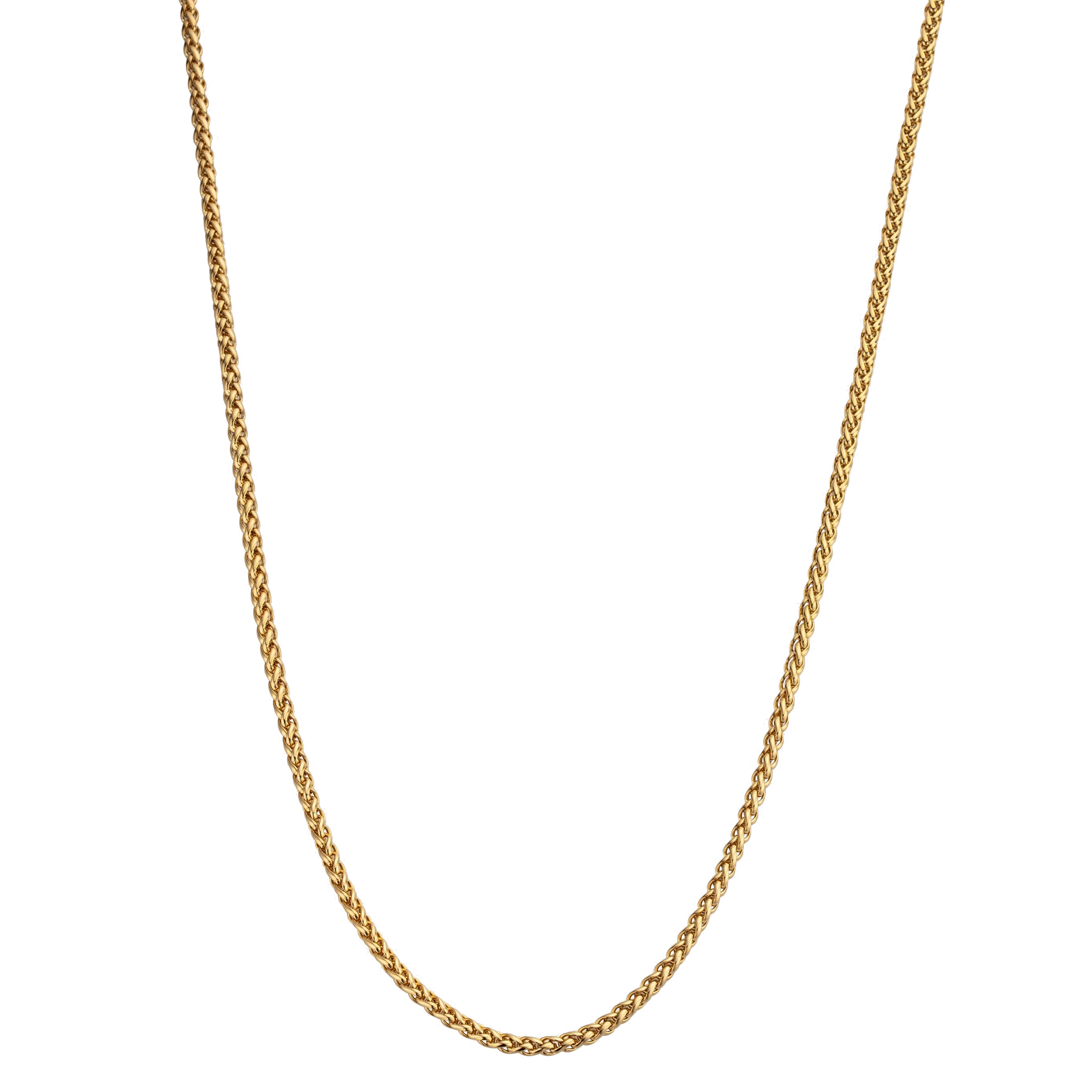 The Wheat Chain is a timeless essential—crafted with four high-quality strands woven together for a sleek, structured look. Its refined design makes it a versatile piece that works with any outfit, whether worn solo for a clean statement or stacked for extra impact.