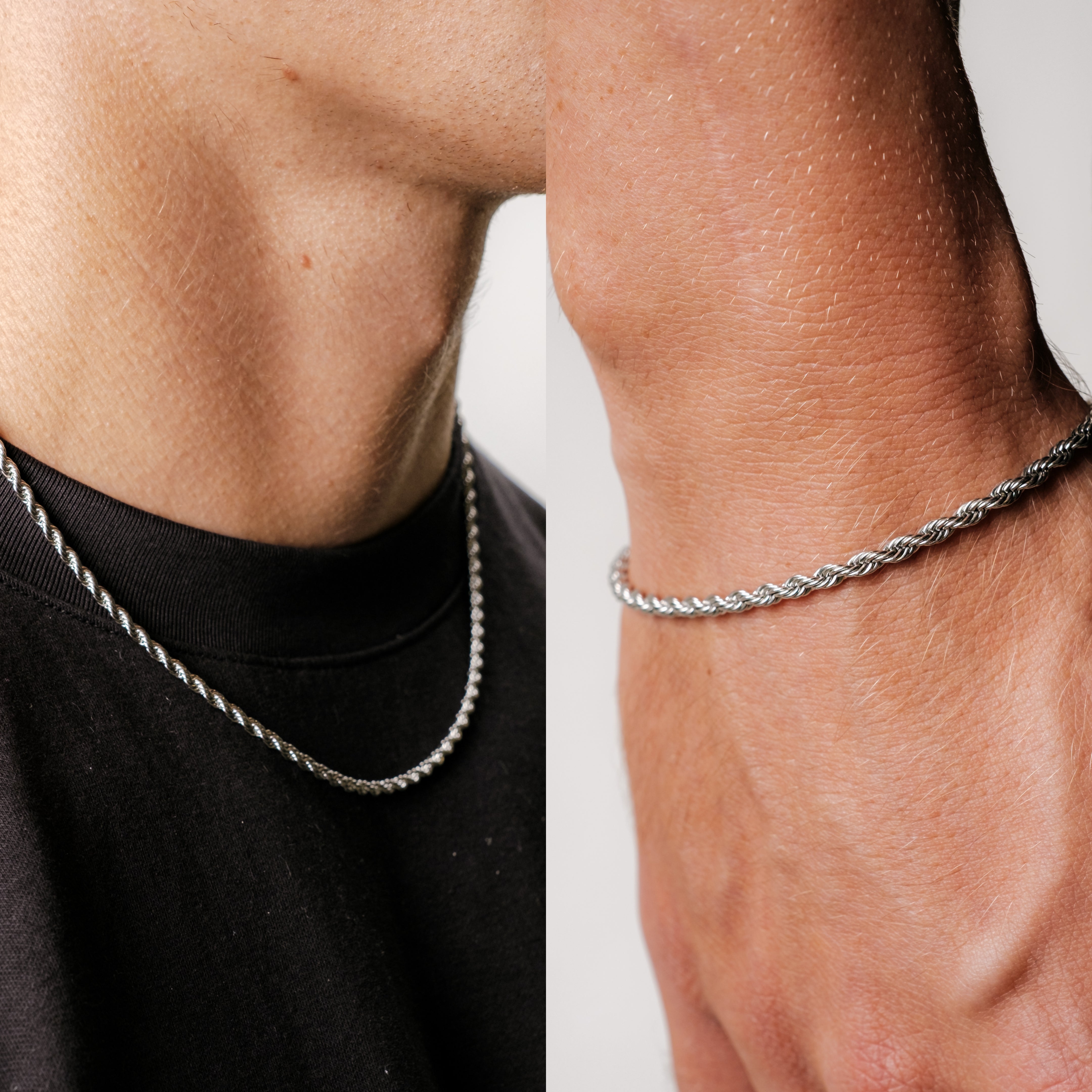 Bundle: Rope Bracelet + Chain 3MM (Silver)