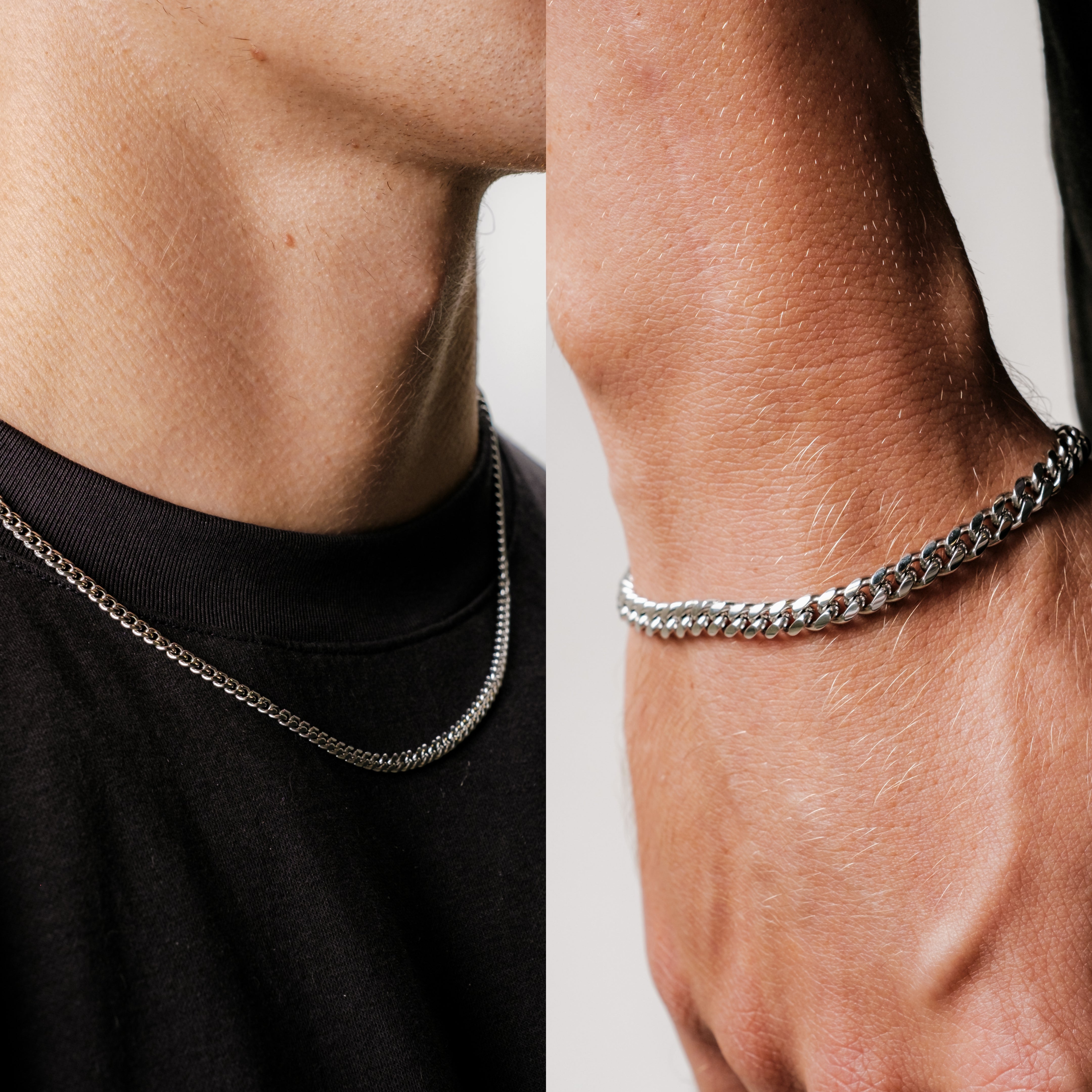 Bundle: Cuban Bracelet 5MM + Chain Bundle 3MM (Silver)