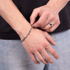 The model is wearing the bracelet in size 7".